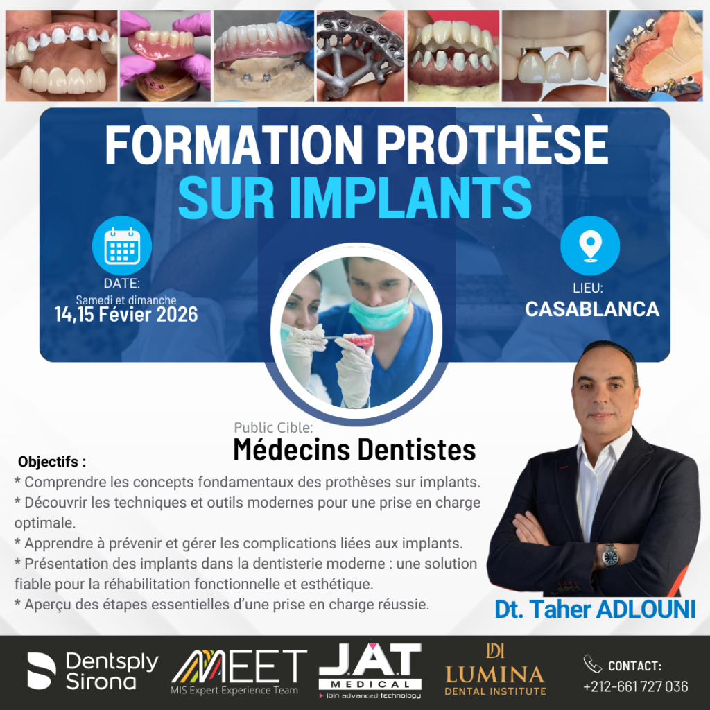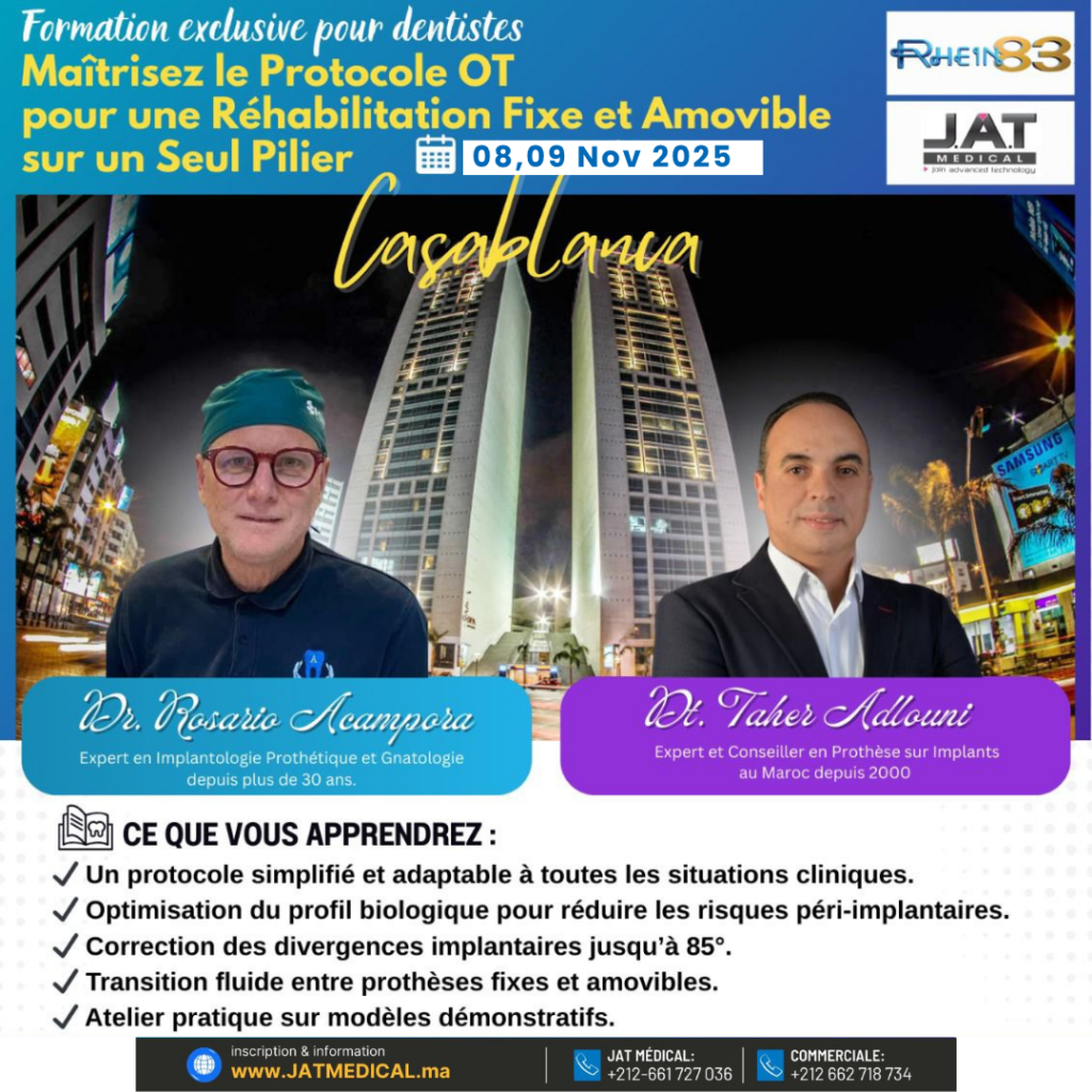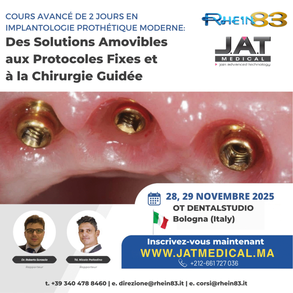 Formations à venir Formation en Italie: IMPLANTOLOGIE PROTHÉTIQUE MODERNE WEBINAIRE EN LIGNE Formation Prothèse sur Implants Protocole OT : Réhab. Fixe & Amovible sur Pilier Unique Formation Chirurgie Guidée Formation en Chirurgie Implantaire Avancée
